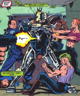 Y ahora sí, nos metemos de lleno como policía comiendo porción de pizza para hablar de Robocop en los comics. Con un personaje cuya historia está inspirada –los propios creadores lo admiten- en comics como Deathlok, American Flagg y The Dark Knight Returns, uno se podía esperar que el comic basado en nuestro policía robot no fallara. Pero nuevamente nos equivocamos y la gran mayoría de las historietas basadas en el personaje son más que olvidables, por no decir una mierda. Salvando a Robocops vs Terminator de Miller y Walt Simonson, esa sí es una gemita.