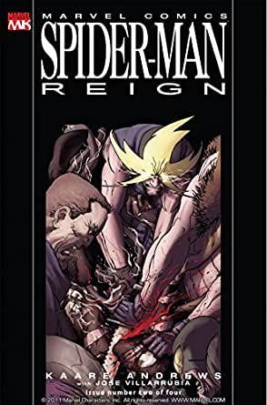 El autor es Karee Andrews, que es guionista, dibujante y cineasta. Realizó obras como Ultimate X-Men, Incredible Hulk, Hawkeye, Iron Fist: The Living Weapon, Spider-Man: Doctor Octopus, entre otros. En el 2010 dirigió su primer largometraje llamado “Altitude”, un thriller sobre un grupo de amigos perdidos en pequeño avión en una tormenta sobrenatural. Quizás lo suyo era la dirección de cine y no los comics. O tampoco, porque según la crítica la película también es bastante floja. Andrews es ayudado en el color por el español José Villarrubia. Si puedo rescatar algo de esta obra, es el dibujo y el color. Spider-Man Reign es una miniserie de cuatro partes publicada en el 2007. Y ya cumplida toda la previa necesaria, nos metemos en la historia.