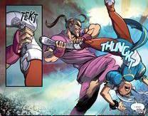 Y así, en cada número van pasando las peleas al mejor estilo Dragon Ball Z y los combatientes van superando etapas hasta llegar al inevitable final. No hay mucho más que eso. Todo demasiado básico. Ya el primer capítulo comienza con una pelea y yo creí que al leerlo me había salteado algún número o algo, porque no entendía que la trama ya esté tan empezada. Un recurso bastante vago para saltear cualquier explicación e ir directamente a los bifes. Lo que podemos decir es que más que Street Fighter vs G.I.Joe es un comic 100% del clásico video juego de lucha. Porque lo que es la esencia de la franquicia de los Joes, se ve muy poco. Y acá hago una denuncia: No tenemos al Comandante Cobra, el villano principal de los G.I.Joe, y eso es un pecado mortal.