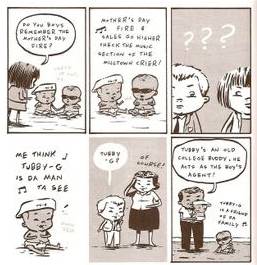 Y después, la antología (recomendada por la editorial «para lectores a partir de los seis años») se iba a nutrir de las colaboraciones de otros autores muy asociados al comic indie de los ´90, que solían aparecer en las antologías para adultos de Fantagraphics, o en sus propios comic books. Así, por las páginas de Measles vimos desfilar a Jim Woodring, Rick Altergott, Johnny Ryan, Ariel Bordeaux, Sam Henderson y hasta al inmenso Peter Bagge, quien trajo de vuelta (para una historia cortita) a Girly Girl, uno de sus personajes más neuróticos. Fuera de los hermanos Hernandez, el autor que más páginas aportó a Measles fue Steven Weissman (también conocido como «Ribs») que dio vida a Olaf Oedwards: Kid Firechief, un personaje muy copado cuyas aventuras aparecieron en los ocho números de la antología, a veces ocupando más espacio que las de la propia Venus.