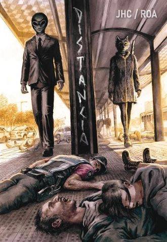 Algo sacudió a los difusores de historietas durante los meses previos, y fue la aparición de Distancia (2022, Mil Palabras), un comic a cargo de la dupla JHC/Roa (Jonatan Catalano y Daniel Roa respectivamente). Vale aclarar que, hasta donde me enteré, estos pibes no tienen nada más publicado salvo este tomazo de 300 páginas. Perdón por lo autorreferencial de las próximas palabras, pero esto me shockeó: ¿qué onda estos pibes salidos de la nada, que se mandan con una obra estridente, pomposa, con tapa de Salvador Sanz y prólogo de Diego Agrimbau, quien también afirma no conocerlos? Lo primero que me pasó por la cabeza fue “qué arrogancia y qué huevos los de estos pibes”. Hay que bancarse un debut a todo trapo, con la bendición de dos grandes artistas de las últimas dos décadas, hay que saber caer bien parado al momento de largarse con esto… y lo mejor de todo es que es un gran comic, una sorpresa y revelación total.