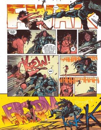 Esta obra, muy influenciada por el manga de los´80, con claras referencias a Katsuhiro Ôtomo y a Masamune Shirow, nos sumerge en un mundo donde impera la degradación social en medio de las ruinas de lo que quedó tras el colapso de nuestra civilización. Por otro lado, hay elementos de la ciencia ficción tipo 2000 AD, especialmente Judge Dredd, en donde los habitantes ya están acostumbrados e instalados en ese entorno. En este sentido, cada página es brillante. El mix de especies, mutantes, robots que coexisten de manera natural, le da un flujo narrativo sumamente orgánico al comic. A pesar de los detalles, no hay saturación visual y a medida que avanzan los capítulos, Lang se anima a más. Apuesta por ángulos difíciles, escorzos. Las secuencias de acción evolucionan. Impresionante realmente.