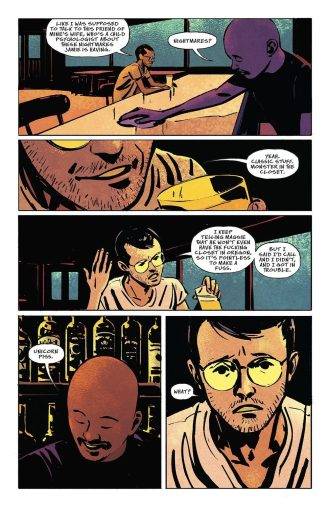 Sin embargo, el conflicto fuerte se da en los padres Thom y Maggie, una pareja que no está pasando por un buen momento. Las peleas y los gritos están a la orden del día. Aún peor, la toxicidad de la relación es algo que impacta en el espacio donde viven, y también en Jamie. Por esto, deciden mudarse hacia otro estado. Es un viaje largo en auto, que comparten padre e hijo. Maggie, por otro lado, para ganar tiempo, viaja en avión. En ese trayecto Tynion se luce nuevamente en el trabajo psicológico y las interrelaciones. Aparecen las falencias humanas mientras que la criatura del armario sigue haciendo de las tuyas. En este sentido, el trabajo narrativo es para aplaudir. Logra generar un cuestionamiento en el lector de lo que es real o no, pero también dejar muy en claro que hay una amenaza tangible que está llevando al niño a una perdición. Tynion lo deja muy en claro: Lo que asusta es la estupidez humana y su incapacidad de abrir los ojos.