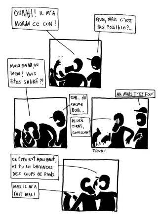 Lo maravilloso de este comic es que el autor se dio cuenta de que podía usar zombies para exponer la idiotez humana de nuestros días. Un poco difícil si nos ponemos a pensar en que el vocabulario de los no muertos clásicos es bastante limitado y por lo general no va más allá de variaciones de “aghhhh” o gruñidos. Pero estos no son de ese tipo. Aquí hablan, piensan y digamos que planean. Son ese elemento extraño que irrumpe en la sociedad sin que nos lo esperemos y terminan por ser tema de debate tanto a nivel televisivo como político. Ibn Al Rabin disfruta cada momento que desencadena la premisa de zombies reales actuando gratis en una película. Es una bola que crece y crece en esos diálogos cargados de un humor muy agudo en el que nos analiza como sociedad. No faltan esos giros imprevistos que sacan carcajadas mientras se nos ríe en la cara y nos señala lo ridículos que podemos ser, pero sin ofendernos.