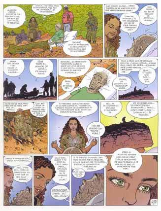 ¿Qué sucede con la narrativa de Moebius? El tercer tomo sufre la verborragia de los textos de Jodorowsky y entonces el arte queda opacado. Las primeras páginas tienen 12 viñetas y pocas ideas para la narrativa. El artista está más suelto y olvida los detalles de los fondos, para lograr una impronta clásica como en su época en Blueberry. Sin embargo Moebius se luce en todas las páginas en las que Mangel protagoniza un ritual para rejuvenecer, ya que el autor juega con la ausencia del paisaje y la espacialidad de las viñetas. Moebius logra que lo abstracto y la simbología del ritual tengan una coherencia en las viñetas, ya que todo está justificado en las expresiones de Mangel.