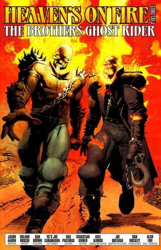 En Febrero de 2008, a Jason Aaron le llega la oportunidad de agarrar una serie en Marvel. Sin dudarlo un instante, el pelado de Alabama se pone la campera de cuero, se sube a la moto infernal y aborda la serie de Ghost Rider en el número 20 del volúmen 4[1] y la pistea como un campeón hasta el nº 35 para cerrar con una miniserie de 6 números: “Heaven’s on fire”.