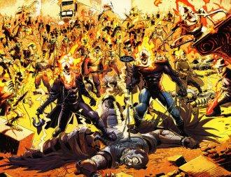 Luego de 21 entregas entre serie regular y mini, Jason Aaron se despide de Johnny Blaze y su banda dejando una huella flameante de humor negro y acción al palo, sobre todo en esas escenas del duelo entre Blaze y Ketch. En este primer encargo para una serie regular de Marvel, Aaron aborda otra vez los planteos sobre el rol de la religión y la ambigüedad de la moralidad y si bien lo hace desde una iconografía judeo-cristiana, con los conceptos bajo los cual presenta a los otros Ghost Riders, busca extender su reflexión a los dogmas de las religiones en general.
