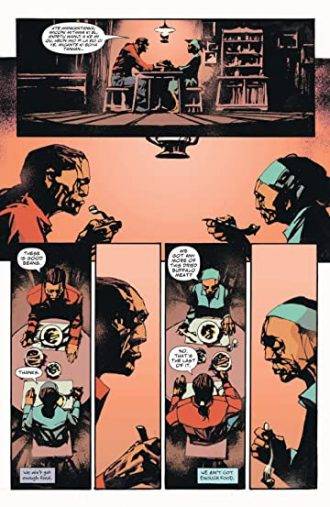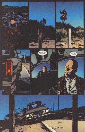 La montaña rusa del horror a la que nos somete desde el nº1 la trama de Scalped (en la que veremos altas dosis de sexo, drogas, violencia y dilemas de todo tipo), está llena de volantazos que uno no ve venir y que te dejan sin aliento entre la sorpresa, la crueldad y la angustia. En paralelo, se desarrolla una lenta pero muy sólida construcción de contexto que incluye historia de esa región de Estados Unidos, parte de la cosmología, mitos, creencias y tradiciones de la tribu, y unos conceptos de personajes apabullantes gracias a unos diálogos soberbios y un afiladísimo uso del recurso de los “flashbacks”, todo esto en un paraje recóndito, al mejor estilo de la tan alabada serie de televisión “True Detective”.