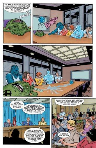 A mi entender, la onda “aventuras en las aulas” que propone la colección no siempre se mantiene con el correr el correr de los arcos, especialmente los números que se ven atravesados por el evento “Avengers Vs X-Men” donde el reparto funciona más como un grupo de superhéroes que como una escuela. De todas formas, Jason Aaron se las rebusca siempre para que todo lo narrado esté lo más posible bajo el paraguas temático escolar como el viaje de estudios a la Tierra Salvaje, excusa que sirve para contar una aventura fuera de la escuela pero en onda “currícula educativa”. Las amenazas a las que se enfrentarán Logan y sus estudiantes vendrán de enemigos clásicos como Mystique y Sabretooth, más contemporáneos como Dog o novedosos como el zoólogo extremo Professor Xanto Starblood, pero los grandes villanos a vencer serán los miembros casi infantiles de la nueva cúpula del Hell’s Fire Club cuyo debut vimos en los eventos de Schism.