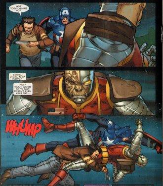 Tras secarnos las lágrimas, volvemos al barro con “Tomorrow dies Today”, dibujada por Ron Garney, una historia con la camiseta de Terminator puesta que nos muestra cómo Deathloks del futuro son enviados al presente para eliminar blancos estratégicos. Se suman al baile Steve Rogers y Bucky Barnes, quienes unirán esfuerzos con Wolverine para evitar el desastre total de esta amenaza temporal. Para cerrar se viene otro numerito introspectivo, el nº16, titulado “The End of the Beginning” que nos cuenta junto a los lápices del capo Davide Gianfelice cómo Logan maneja (o intenta hacerlo) la muerte de su querido amigo Kurt Wagner, asesinado en la serie regular de los X-Men. Debido a la naturaleza religiosa de Nightcrawler, en esta historia Aaron juega con la relación de Wolverine con la fe y la religión, algo que ya había hecho en su historia novel “A good man”.