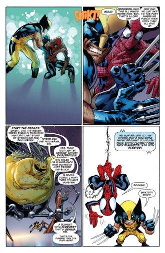 En Mayo de 2010, Jason Aaron y Adam Kubert se juntan para trabajar otra vez ese team-up entre Spider-Man y Wolverine que tan bien salió en “A Mile in My Moccasins” y lanzan «Astonishing Spider-Man & Wolverine», una miniserie de seis números bastante delirantes con una trama en la que los dos héroes son transportados mediante viajes temporales. Así visitamos varias realidades alternativas, que sirven de excusas para poner a los protagonistas frente a conceptos como aventuras prehistóricas, westerns, Doom el planeta viviente, la pistola Fénix y otros delirios. A pesar del tono cómico de pareja dispareja que predomina en el guion, hay lugar para la pausa nostálgica que siempre nos mecha Aaron entre palo y palo, ejemplificado en ese momento en el que nos describen cómo sería la transición a la muerte de Logan.