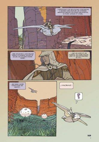 En esta versión, Arzak no es un humanoide de piel amarilla y rasgos medio orientales. Es un humano común y corriente, con rasgos europeos y sin más superpoderes que el de usar ese gorro con forma de poronga sin parecer un ridículo. Moebius re-explica al personaje, a su misión, a su relación con el resto de los personajes que aparecen (hay ocho o nueve importantes) y arma las bases de un universo. Todo lo que pasa acá está perfectamente justificado, hasta lo más fumanchero. Evidentemente, el maestro había imaginado no sólo un mundo, no sólo un clima, no sólo un nuevo look para el personaje, sino toda una epopeya, compleja y elaborada, que arranca por la senda correcta.