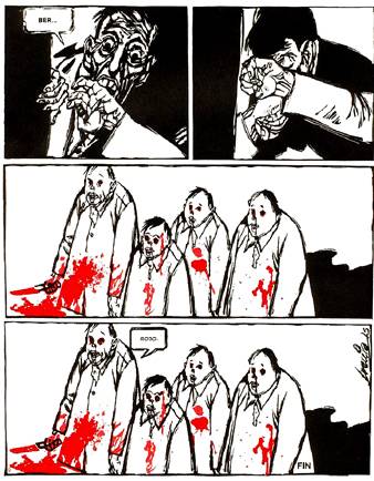 Y el resto del libro se centra en colaboraciones entre Breccia y Carlos Trillo (por entonces una joven promesa): un unitario que ya se había publicado en Italia (la adaptación de La Pata del Mono) y seis relatos absolutamente inéditos: cuatro episodios de Un Tal Daneri (serie que había tenido un efímero paso por las páginas de la revista humorística Mengano), la adaptación de Donde Suben y Bajan las Mareas, y esa joya inolvidable que es la adaptación de La Gallina Degollada, sobre el famoso cuento de Horacio Quiroga.
