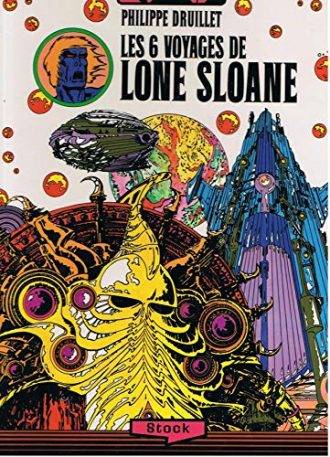 Las seis historias (hilvanadas por una trama global en la que Lone Sloane intenta regresar a la Tierra tras haber sido abducido por el trono negro, por un misterioso objeto extraterrestre) son: El trono del dios negro, Las islas del viento salvaje, Rose, Torquedara Varenkor, O Sidarta y (la única publicada en 1971) La Tierra. Previo a estas aventuras, Lone Sloane había aparecido una sola vez, en el álbum de 1966 titulado Los misterios de los abismos, realizado por un Druillet todavía muy joven e inexperto, que afirma haber liquidado las últimas 30 páginas en dos meses. O sea que «Los 6 Viajes…» es a todas luces un Vol.1, un punto de entrada a la saga de este extraño aventurero galáctico al que Druillet regresará varias veces, incluso en este siglo, para convertirlo en su personaje más emblemático y reconocible.