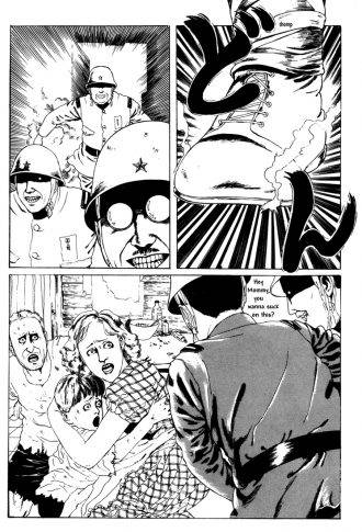 Dentro de lo que es la narrativa más convencional, tenemos que destacar los tres episodios de Pécora (protagonizados por una colegiala maligna y perturbadora) y por supuesto, El Planeta de los Japos, la impactante ucronía (o What If…, para decirlo en términos comiqueros) en la que Maruo nos cuenta una Segunda Guerra Mundial que termina cuando Japón lanza bombas atómicas sobre Los Angeles y San Francisco y EEUU presenta su rendición incondicional para someterse a la ocupación (y todo tipo de humillaciones) por parte del Imperio del Sol Naciente. Esas 28 páginas justifican todo el libro.