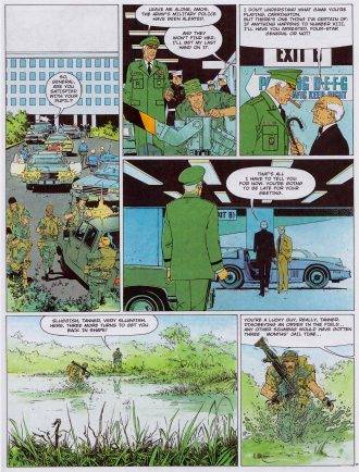 Otro día podemos hablar de lo importante que es que las series largas del mercado francobelga se recopilen en integrales, y que estos estén siempre disponibles para captar nuevos lectores. Y de ahí podemos pasar a lo ridículo que resulta seguir sosteniendo el formato de 48 páginas en tapa dura, sobre todo cuando este material se publica fuera de Francia. Pero quería hablar un poquito de XIII y tirar alguna punta de por qué es tan atractiva esta serie y por qué se ganó el status de tanque insumergible en un mercado tan competitivo como el del comic francófono. XIII es una historia de misterio, de conspiraciones y secretos enroscados de manera magistral y condimentados con rosca política, asesinatos y mucha acción. Los cuatro primeros tomos (Le jour du soleil noir, Là où va l’Indien…, Toutes les Larmes de l’Enfer y SPADS, reeditados en el integral en cuestión) aparecieron originalmente entre 1984 y 1987 y nos trasladaron a Estados Unidos, donde Van Hamme y Vance nos hicieron vivir en carne propia la tragedia de un tipo que aparece vivo de milagro, pero amnésico, y que tiene que recuperar su identidad mientras se lo acusa nada menos que de haber asesinado al presidente de EEUU. Así se empieza a urdir una trama repleta de operaciones turbias de las agencias de espionaje, el FBI, los milicos yankis, y gente que trata de ayudar a XIII y casi siempre termina muy mal.