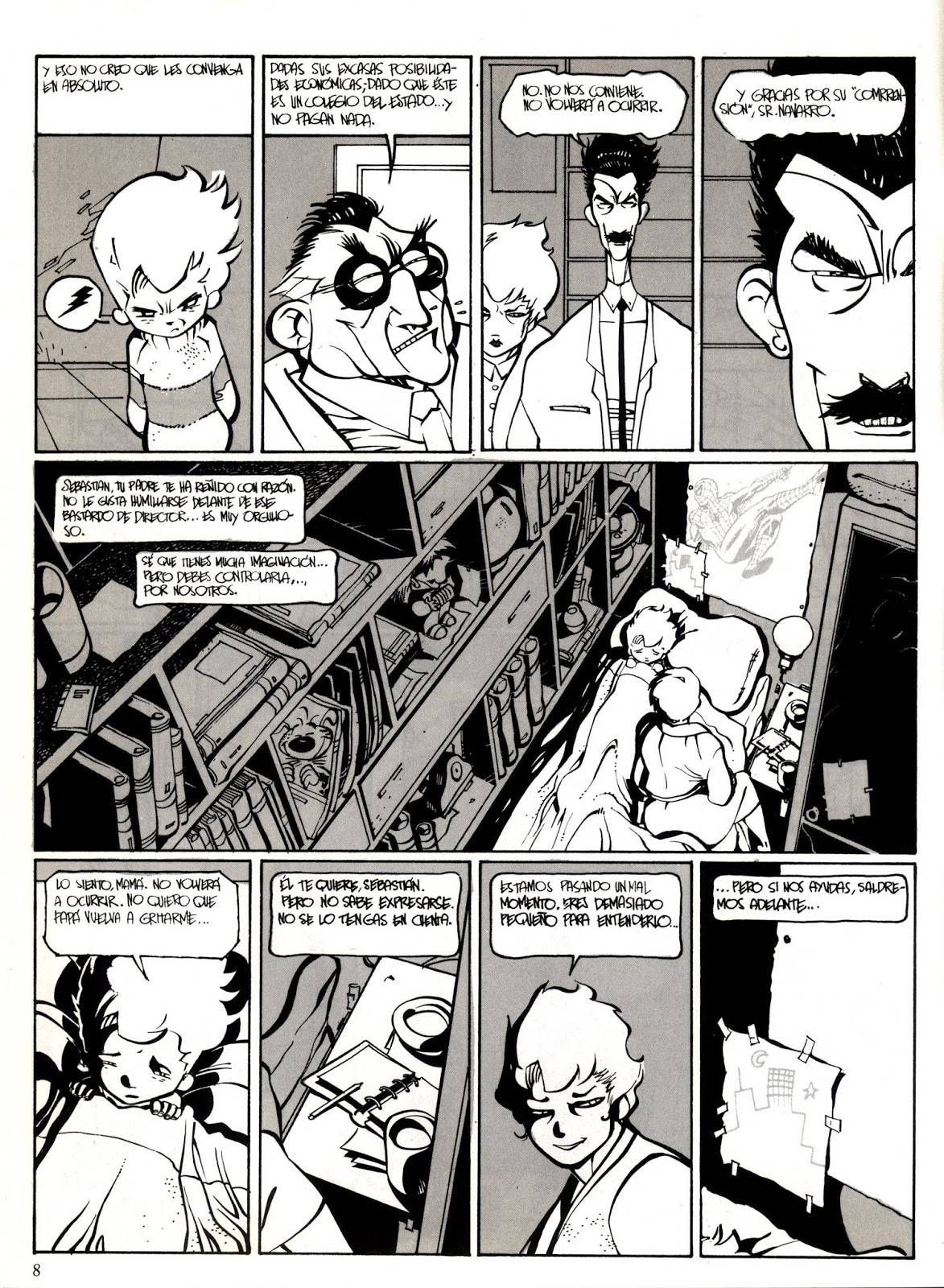 Estamos en 1989, y Pasqual Ferry ni sueña con dibujar superhéroes para Marvel. Tiene un espacio todos los meses en Zona 84, la revista dirigida y editada por Josep Toutain, y mucha libertad para escribir y dibujar básicamente lo que se le dé la gana. En el nº58 (Marzo de 1989) finaliza su primera serie de éxito: Crepúsculo, muy influenciada por la obra de Frank Miller y otros autores de los que se dedicaban a deconstruir la figura del superhéroes. Al mes siguiente, empieza otra serie, totalmente distinta: en el nº59 de Zona 84 nos va a presentar a Sebastián Gorza/ Nociones de Realidad. Son apenas 44 páginas, realizadas a un ritmo muy rápido: para Agosto del ´89 ya estaba terminada y publicada en su totalidad en Zona 84. Sebastián Gorza nunca ocupó la portada de la revista ni recibió demasiada promoción por parte de la editorial, y mucha gente ni se debe acordar de haberla leído en aquella etapa de la famosa antología. Y aún así, estamos frente a una obra maestra.