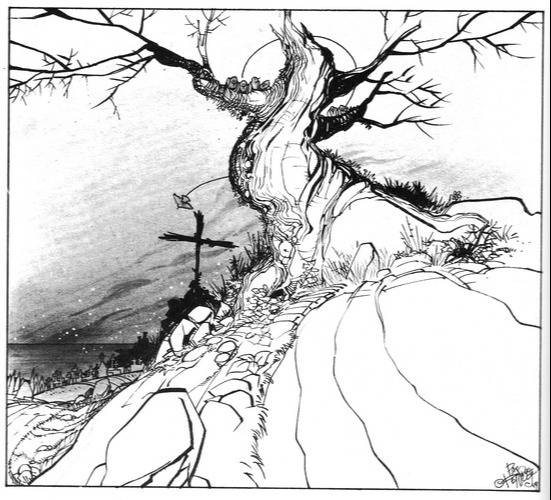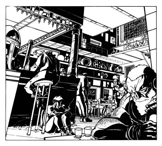 Pero felizmente el autor no mezquina su trazo. Cuando se tiene que matar para dibujar un fondo, se mata (y acá vemos algunos de los mejores fondos de la carrera del ídolo). Cuando tiene que experimentar con un esfumado, experimenta. El increíble manejo del claroscuro que muestra Ferry le permite hacer todas estas cosas sin desviar la atención del lector, ni confundir, ni agobiar con detalles innecesarios.