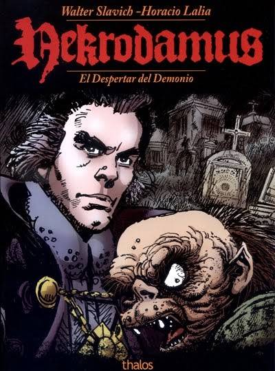 Creada en 1975 por Héctor Germán Osterheld y dibujada por Horacio Lalia, quien recrea el ambiente gótico de manera extraordinaria, Nekrodamus pasa luego por otros guionistas, como Trillo, Sacomano, Collins y Slavich. Este último, quien tomara al personaje en 1989, demuestra un gran talento con la narrativa de esta historieta.