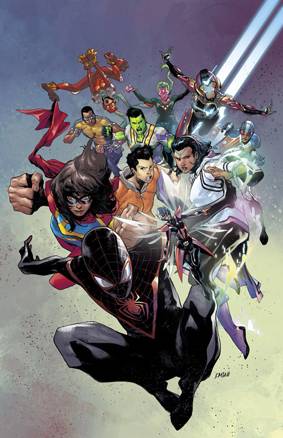 Bajo el liderazgo de Ms. Marvel, el equipo crece y cobra dimensiones globales, con miembros que se suman desde una docena de países distintos. Una verdadera legión de héroes jóvenes está ayudando a salvar gente e inspirando a una nueva generación, pero por debajo de la superficie de esta experiencia hay algo siniestro, un secreto oscuro que amenaza con destruir al equipo y a todo lo que este representa.