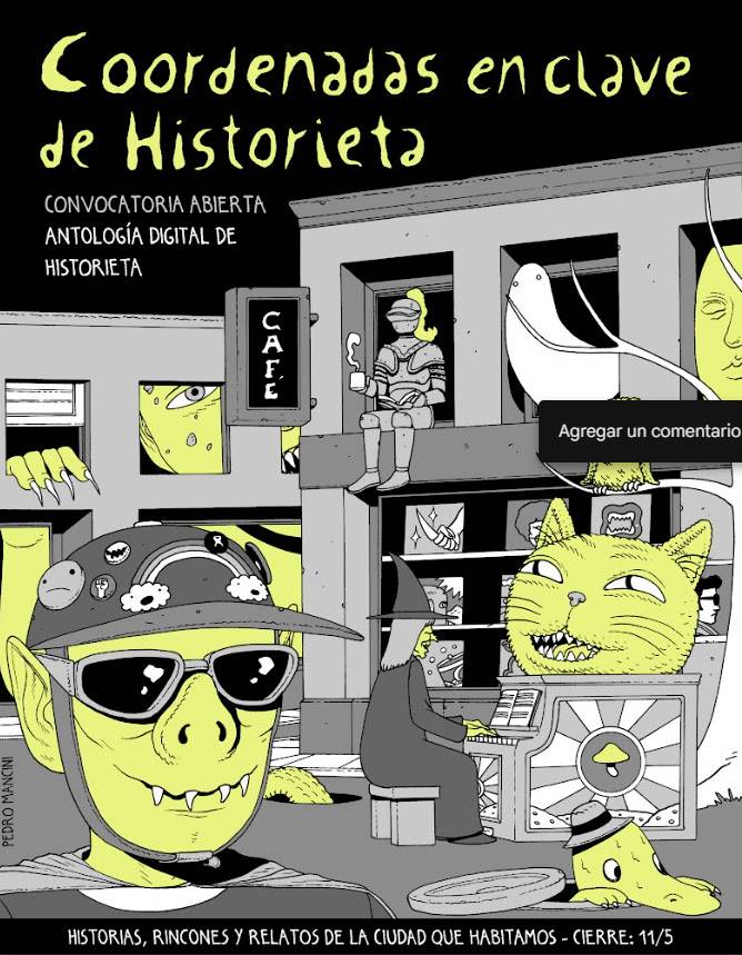 El colectivo En Clave de Historieta y Loco Rabia lanzan la convocatoria “Coordenadas en clave de historieta”, que tiene como objetivo final la realización de una antología digital que Loco Rabia publicará online en su e-zine. La idea es dibujar todas las caras de la ciudad, sus historias ocultas, rincones, con trazos únicos. El flyer de la convocatoria fue realizada nada menos que por Pedro Mancini (@pedro_luis_ultradeformer).
