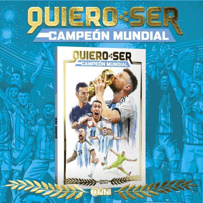 OVNI Press anuncia para Abril la publicación de un libro al que define como «el souvenir perfecto para revivir el triunfo de Argentina en el Mundial de Fútbol Qatar 2022» . «Quiero ser campeón mundial» es la novela gráfica que te va a llevar de la mano en esta epopeya futbolera. Desde los más chicos que sueñan con ver a la Selección Nacional levantar la copa del mundo hasta los más grandes que recuerdan la gloria de Diego en México 86, todos se unen en esta emocionante historia de una familia (y un país) que persigue un sueño.