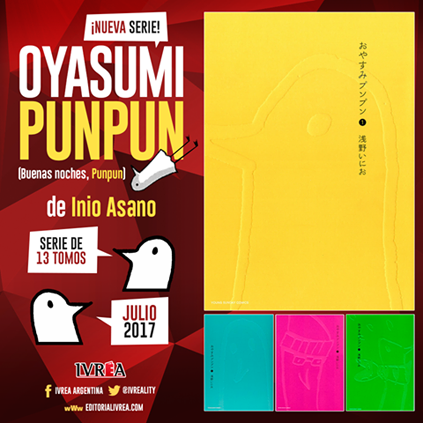 A partir de Julio, la editorial Ivrea publicará en nuestro país nada menos que Oyasumi Punpun (Buenas noches, Punpun), una de las obras fundamentales del genial mangaka Inio Asano. Serializado en Japón entre 2007 y 2013, el manga cuenta con 13 tomos que Ivrea editará en versión idéntica a la japonesa (Formato B6 con sobrecubiertas).