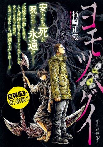 Esta semana Kakizaki volvió a ser noticia porque el martes empezó a serializar un nuevo manga en la revista Gekkan Young Magazine, de la editorial Kôdansha. El título es Yomotsuhegui – Shisa no Kuni no Kaijitsu y, como suele suceder, se presentó con un episodio extra-large de 53 páginas, algunas de ellas a todo color.
