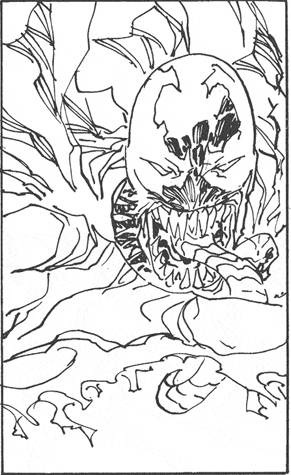 Dice McFarlane: «Necesitaba encontrar un nuevo dibujante y quería uno que me entusiasmara, que me emocionara, y alguien en quien pudiera confiar. Alguien que si me enfermo, o me pasa algo, se pueda poner el laburo al hombro. Con Erik varias veces habíamos hablado de que me dejara entintar dibujos suyos, porque me parece que nuestros estilos se mezclan muy bien, pero cuando él hace Savage Dragon se pone muy en estrecha y no deja que nadie meta mano. Pero bueno, llegamos a esta situación en la que yo necesitaba un número de relleno, para ganar tiempo y armar un nuevo equipo creativo para Spawn. Erik me dijo «escuché que necesitás un guionista, yo te puedo ayudar a escribir». Le dije que sí, y empezamos a charlar varias historias. Y en un momento Erik me dice «¿Y qué onda si también las dibujo?». Yo justo estaba con ganas de volver a entintar Spawn, así que rápidamente nos pusimos de acuerdo. Ya vi las primeras páginas y son alucinantes».