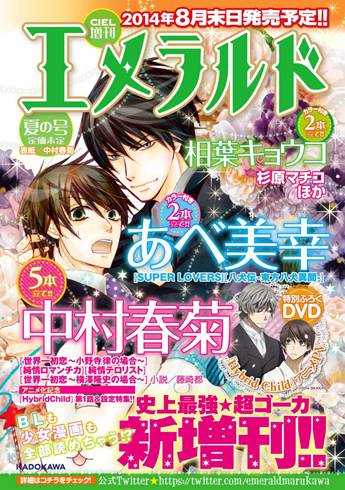 Ahora la editorial Kadokawa anuncia para Junio una nueva revista trimestral dedicada al yaoi, llamada Emerald. El atractivo de esta revista es que va a incluir episodios inéditos de varias series que se están publicando con éxito en otras revistas, principalmente en el mensuario Ciel.