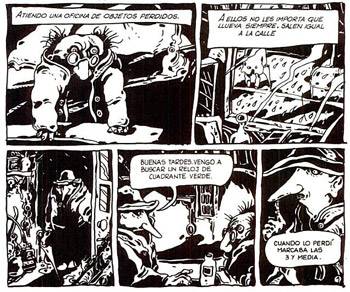 De Santis se transformó, con los años, en uno de los mejores escritores argentinos (el mejor de su generación), con novelas como La traducción, El teatro de la memoria, La sexta lámpara y El enigma de París, pero no abandonó nunca su pasión por el noveno arte (sobre el que además teorizó mucho y muy bien). Hace poco nos brindó, con Juan Sáenz Valiente, esa maravillosa novela gráfica que es El hipnotizador, y en la Fierro actual realizó con Frank Arbelo otra joya: Justicia poética. Max Cachimba, por su parte, desarrolló una carrera ecléctica (es además un notable artista plástico), cercana al delirio en el mejor sentido de la palabra, con mucho de absurdo pero con una fundamental comprensión de lo que significa narrar en viñetas.