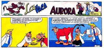 La Vanguardia, diario oficial del Partido Socialista, decidió ser un diario de opinión y ahí comenzò con dos tiras. Tadeo el Violinista , que era dominical, y otra diaria cuyo nombre era Don Alfonso y contaba las aventuras de un nuevo rico. Es en esta tira en donde a partir de 1939 aparece esporádicamente la Vaca Aurora, creada por el gran Mirco Repetto (1915, Italia-1996, Buenos Aires).