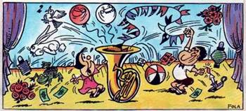 Cualquier niño que creció en Argentina entre 1949 y 1999 probablemente conozca a Pelopincho y Cachirula. Iniciada en Billiken en algún momento de los años ´40 (probablemente entre 1947 y 1949) y luego migrada a Anteojito hacia finales de los ´60, la tira de Fola es una cosa tan hermética, tan prototípica, tan perfectamente cómica, que es inevitable que uno en su infancia haya corrido las páginas hasta llegar a la tira vertical de cómo mucho dos cuadritos por línea.