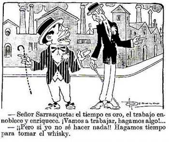 Inmigrante, español, Sarrasqueta siempre estaba dispuesto a figurar y a intentar ganar prestigio o dinero de forma rápida y fácil, cosa que en la mayoría de las veces le era esquivo. Crítico social de la realidad que lo circunda, incorpora como dato a la historieta (si bien el recurso del globo es escaso a lo largo del tiempo en este personaje) la visión de aquella Argentina de los «años dorados», pero sin perder de vista los acontecimientos internacionales, no sólo polìticos si no también artísticos.
