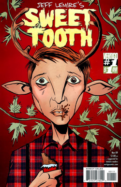 Sweet Tooth es la obra maestra de Jeff Lemire. Bah, Lemire tiene muchas obras maestras (y no, no me refiero a Constantine), pero Sweet Tooth es una obra indispensable para cualquiera que quiera sumergirse en el trabajo del canadiense. Bajo el sello de Vertigo, y a lo largo de 40 números publicados entre 2009 y 2013, Lemire se encargó de escribir y dibujar una serie de una identidad única, que se desmarcaba de cualquier herencia vertiguesca (¿?) para echarse andar por un camino varias veces transitado, pero que jamás pierde vigencia: el de la construcción de un nuevo mundo sobre las cenizas de uno que murió.
