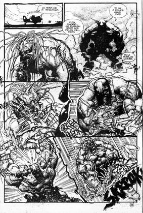En esta primera etapa, que podríamos definir como la más “aventurera” de Cazador, se refleja la fuerte influencia de Lobo –y, en general, todo el trabajo de Simon Bisley y otros autores como Jamie Hewlett y Sam Kieth- y la línea Image de comienzos de los ’90, que por aquel entonces estaba en la cresta de la ola. Junto al tono paródico y el humor negro que comienza a desplegar, aparecen los elementos pilares de la serie: la violencia, el sexo y las puteadas. Un hecho reconocido por sus propios autores es que, en general, el comic nunca tuvo la intención de ir más allá de un divertimento entre amigos, aunque apoyado, sin dudas, por el impacto que generaban la potencia y la calidad de los dibujos.