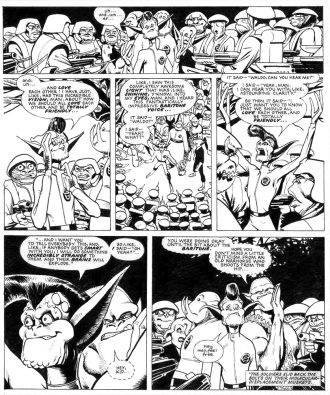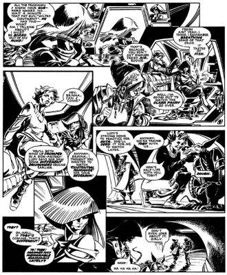 Curiosamente, Moore y Davis realizaron este “D.R. & Quinch” en simultáneo con su etapa en la serie del Captain Britain para Marvel U.K.; sin embargo su trabajo es ligeramente distinto al de su vertiente superheroica que más tarde le haría triunfar. “D.R. & Quinch” es una serie con muy poca acción, con muchas secuencias dialogadas e incluso con muchas partes de la narración contadas “fuera de cámara”. No es por tanto en la cinética narrativa, que tan bien domina, donde destaca el trabajo de Alan Davis: lo es en la caracterización de personajes (no olvidemos que la Tierra desaparece en el primer episodio, y por tanto todos los seres que aparecen en la serie son extraterrestres diseñados por el dibujante) y en la descripción escenarios (que también permiten la exploración de la capacidad imaginativa del ilustrador). Se da además la curiosa circunstancia de que esta misma definición se puede utilizar para la descripción del trabajo del ilustrador de la siguiente obra de Moore.