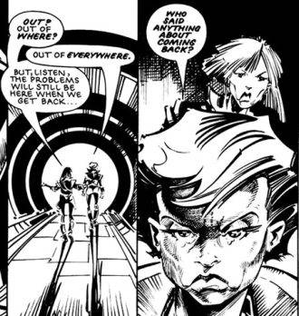 Este segundo tomo, centrado en un viaje espacial de un año, servirá para que vayamos conociendo mejor la personalidad de la protagonista y para que Moore demuestre su talento de creador de personajes como el de una/o chica/o que debido a su indecisión se ha cambiado tantas veces de sexo que ha terminado sin tener ninguno definido. Esto, unido a su timidez, ha terminado por generar una especie de no-existencia, en la que los demás apenas son conscientes de su presencia; de modo que cuando sacrifique su vida para salvar a las protagonistas, ellas apenas se darán cuenta de ello.
