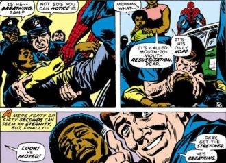 En particular, en este número, en las páginas 10 y 11 vemos a un joven delirando bajo la influencia de las drogas en el borde de una terraza de un edificio con el peligro de caerse al vació sin tener conciencia de sus actos, no sólo del peligro para sí mismo, sino también para terceros (los transeúntes). En la página 11, Spider-Man llegará a salvarlo. Los números siguientes de esta trilogía (que también se publicaron sin el sello) fueron los números 97 y 98, que trataron el tema de la influencia de las drogas en Harry Osborn, el compañero de cuarto de Peter Parker. Recordemos que Harry era el hijo del empresario millonario Norma Osborn, quien a su vez era el Green Goblin. Pero el nº 96 era el más importante de esta trilogía -de ahí el título de este artículo- porque fue el primero que no se sometió a las regulaciones del Comics Code, y por el valor del contenido del mensaje que se buscó transmitir.