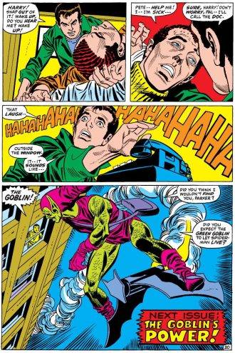 Todos los comics que se publicaron a partir de 1954, y en los años y décadas venideras, tenían que pasar por el filtro del Comics Code y aquí es donde entra la trilogía presentada en los números 96, 97 y 98 de Amazing Spider-Man. El más importante a los efectos de lo que queremos contar es el nº96, que contó con el guion de Stan Lee, dibujos de Gil Kane y entintado del genio John Romita, mientras que en los nºs 97 y 98 el encargado de las tintas fue Frank Giacoia.