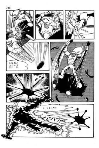 Como para estirar la trama lo más que se pueda, los ataques de Goa son de todo tipo, desde la clásica invasión de naves hasta hacer copias de personas en Tokio que reemplacen a los humanos originales, al estilo Invasion of the Body Snatchers de Don Siegel, sumado también algún que otro alien “aliado” del villano, algo que le da a Tezuka el divertimento de crear todo tipo de monstruos uno más demente del otro. Estas escenas junto con las del tiempo prehistórico, me imagino, habrán sido de las más divertidas para dibujar para el maestro, porque el dinamismo y el impacto visual que despliegan son imparables. Seres gigantes y grotescos que ocupan hasta una página entera. No me extraña viniendo de una persona que en su infancia tenía una fijación importante por los insectos.