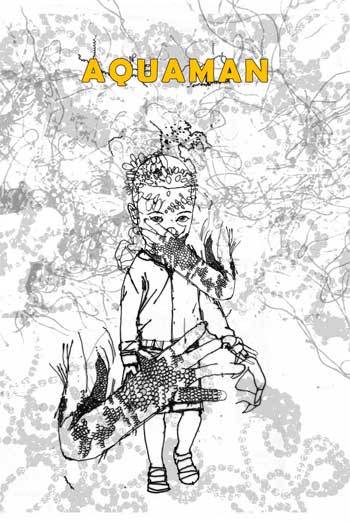 Diego Velázquez, para su obra teatral Aquaman, se calza el traje del hombre de los mares y, hay que decirlo, le queda perfecto. Literal y metafóricamente: el diseño del traje es digno del realismo sutil del teatro puesto en escena y, a la vez, Velázquez da con el físico del rol del personaje (aunque no sea rubio como les gustaría a los puristas), del personaje que ha creado sobre la base de un recuerdo de lecturas de infancia y adolescencia y de la madura y profunda lectura del bellísimo poemario La fuerza de Hernán La Greca (bajo la luna nueva, 2001), cuyos versos están dedicados a otros personajes de historieta como Silver Surfer, Wonder Woman, Flash, Gatúbela y el Hombre Araña. La Greca hace revisionismo historietístico para brindarnos una visión no tan descarnada como la del Dark Knight, sino más bien melancólica e intimista.