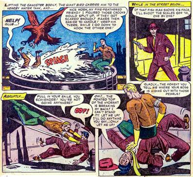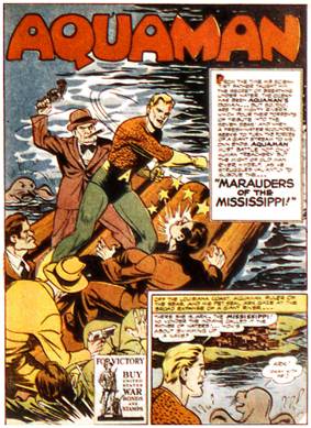 Y en segundo lugar, dejar en claro que para cuando apareció la More Fun n°73 ya existía Namor the Submariner, una creación de Carl Burgos que protagonizaba desde 1939 la revista Marvel Comics. O sea que ya había un héroe subacuático que estropeaba barcos y submarinos nazis durante la Segunda Guerra Mundial. Por supuesto, Namor no hablaba con las criaturas marinas, pero es apenas un detalle.
