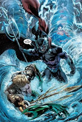 Finalmente, entre los 52 títulos que lanza DC en Septiembre de 2011 está el nº1 de la nueva serie de Aquaman, que logra superar holgadamente los 100.000 ejemplares vendidos, algo insólito para un personaje tradicionalmente ubicado en la segunda línea del panteón heroico de DC. Pero claro, traccionan sobre todo los nombres de los autores: Geoff Johns, principal arquitecto del Universo DC, y el dibujante brasileño Ivan Reis, ya consagrado y con muchos trabajos en conjunto con Johns, que arrancan allá por 2002 en una miniserie de Vision realizada para Marvel.