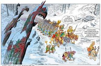 ¿Alcanza con eso para salir a festejar? No. Además, la historieta tiene que estar buena. ¿Y, qué onda? A mí, en general, me gustan más las aventuras de Astérix en la aldea que aquellas en las que un puñado de galos emprenden viajes a tierras lejanas. Y la verdad que los dos álbumes de la dupla hoy a cargo de la serie (Jean-Yves Ferri y Didier Conrad) que narran aventuras lejos de la aldea, son tirando a flojos. No horribles como la mayoría de los álbumes de Uderzo «solista», pero bastante poco convincentes. Esta vez, Ferri y Conrad aplastaron mis prejuicios contra las aventuras «de viajes», con un álbum realmente muy, muy bueno. Y muy raro.