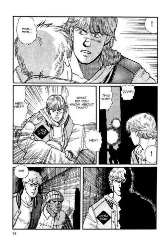 El primer momento donde esto se hace evidente es en la lucha a muerte entre Ash y Arthur. Hay una tensión que va in crescendo desde el momento en el que las pandillas preparan el terreno para que sea una lucha de uno a uno. Aquí Yoshida utiliza a los seguidores de Ash con maestría, pero sobre todo da mucho peso a Cain y los suyos, quienes están de mediadores para que nadie más intervenga en la pelea. En un giro brillante, Arthur traiciona el pacto de honor. Trae a sus seguidores armados para que asesinen a Ash y los suyos. Aquí la acción deriva en la inevitable batalla entre los dos personajes, donde el protagonista queda malherido. No hay descanso y comienza otra saga con aún más tensión: La del rescate de Ash.