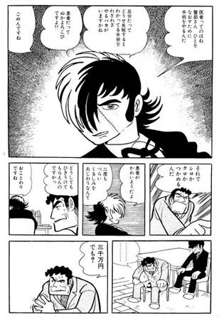Las historias de Black Jack, narradas con la simpleza y claridad características de Tezuka, ofrecen, además de inteligentes argumentos, toda una serie de sub-textos para reflexionar sobre cuestiones éticas, dilemas científicos y la idea de justicia que deben mantener los médicos ante la sociedad que los necesita. El autor acierta en servirse, muchas veces, de la ironía y el humor negro para presentar relatos que, de otra manera, se volverían insoportablemente trágicos. El desfile de enfermedades terminales, tumores, infecciones, transplantes es incesante, y Tezuka no le hace asco a explicaciones de neto corte científico, ni a primeros planos explícitos de cuerpos desmembrados y otras delicias semejantes. En claro contraste con el atroz realismo de estas escenas –y para brindarle un respiro al lector ante tanta “carnicería”-, los personajes secundarios están dibujados en el estilo caricaturesco que hizo famoso al autor, pero amalgamados de manera tal que no perturban la normal lectura. Como broche de oro se yergue la caracterización de Black Jack, con la cicatriz que le cruza el rostro, a mitad de camino entre el realismo y la caricatura, como una representación de su personalidad: un ser amoral, ambiguo, cruel y humano en partes iguales, con la capacidad de pasar del amor al odio en el brevísimo lapso de una viñeta.