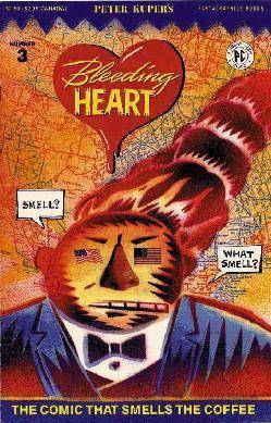 A Kuper no le era ajena la idea de la antología. En 1980, junto a Tobocman, arma la World War 3 Illustrated (que vale aclarar: continúa publicándose hasta el día de la fecha, van 55 números bianuales), un magazine de historietas completamente político. Y esta mención no es azarosa, más allá de ser una antología: las historias de Peter tienen un nivel de compromiso político muy fuerte, totalmente alineado con ideologías de izquierda. Parte de dicho compromiso se ve explícitamente en The Jungle (adaptación en historieta de la novela homónima de Upton Sinclair publicada por First Comics bajo el sello “Classics Illustrated”) o The System, miniserie para Vertigo… y obviamente, acá en Bleeding Heart..