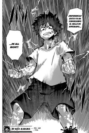 Para concluir la introducción de la trama, digamos que Midoriya tiene la suerte de encontrarse con su héroe All-Might, al que le pregunta si él podría convertirse en un héroe pese a no tener poderes, y tras una charla y un sinceramiento personal por parte de All-Might sobre cuestiones personales, la respuesta es negativa (digamos que le rompe el corazón al protagonista).