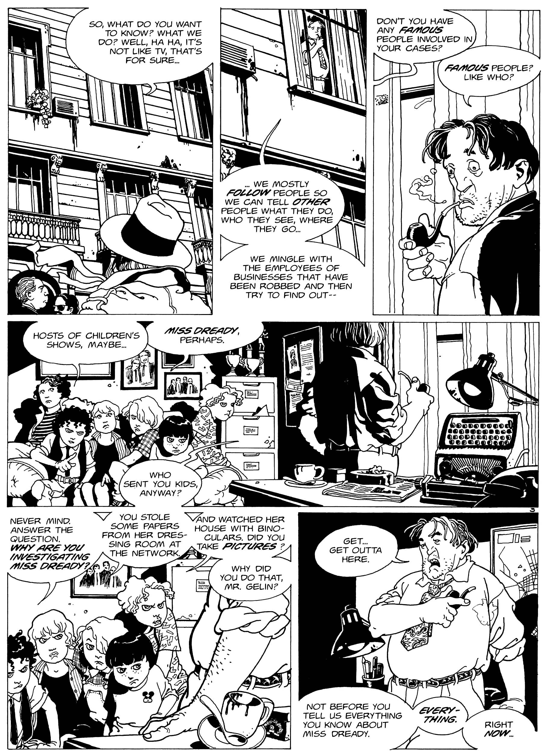 J.C. Benedict se llama así por JesuCristo Bendito, pero podría haber sido también por John Constantine, porque el conflicto que se plantea en Video Noir se parece bastante a los de los clásicos episodios de Hellblazer. Dentro de una estructura que dialoga con el thriller detectivesco y el policial negro, de pronto se nos revela la existencia de un ser infernal, poseedor de una maldad ancestral y arcana. La diferencia con John Constantine es que J.C. Benedict no sabe de magia y, en un principio, no tiene pistas para confrontar con esta criatura.